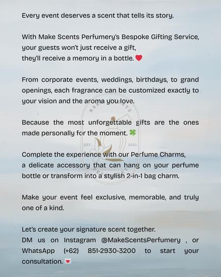 DM us on Instagram @MakeScentsPerfumery , or WhatsApp (+62) 851-2930-3200 to start your consultation. 💌